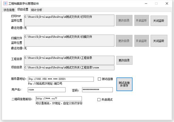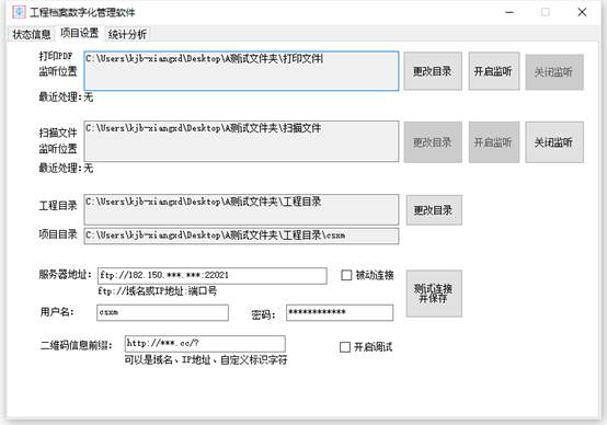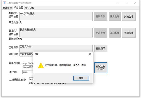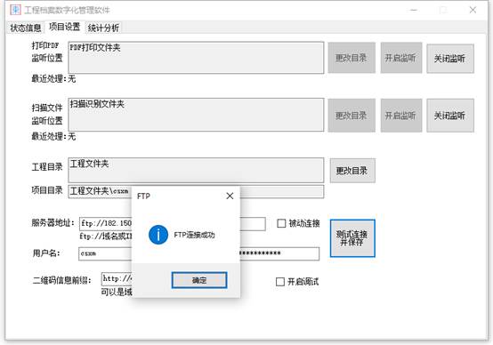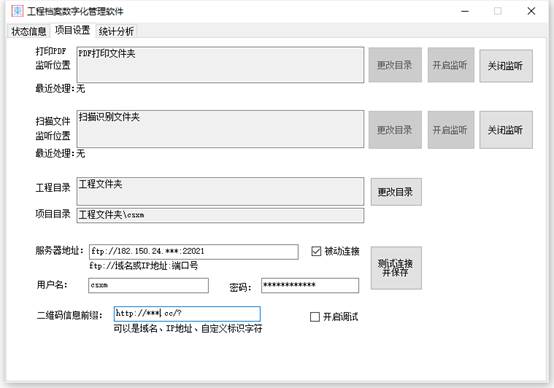 需要获得ftp地址、端口号、用户名、密码、连接模式(是否使用被动模式)、二维码前缀信息。
