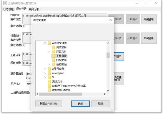 此窗口选项卡有三个目录需要设置分别是打印PDF目录、扫描文件目录、工程文件目录;有一个自动创建的目录位置,项目文件目录是由工程文件目录+用户名自动创建的目录;