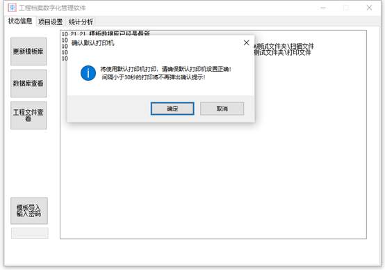 打印文件:首次或者30秒内未处理过文件,则会弹出打印提示。确定的话,两次打印小于30秒内已经打印过文件(批量),则会默认采用上一次打印设置直接打印而无需人工干预,也就是说,批量导出或批量复制PDF到打印PDF目录后,只需要设置一次打印。取消的话,接下来的每一个文件打印均会弹出提示框。也就是说不能一次性取消所有打印。