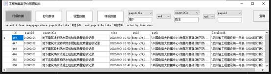主要用于查看本地数据库的信息,包括扫描数据、打印数据、设置数据、样板数据,并带有三个参数的查询设置,如下图所示;